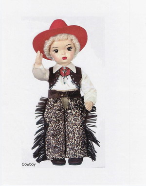 Jerri Lee is the perfect accompaniment to your Terri Lee Goes West Doll. He comes with tassled leopard skin chaps and a red ten-gallon hat with matching scarf and bolo tie.