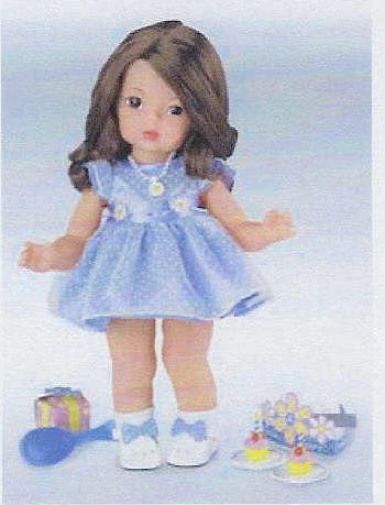 A sweet, wholesome playmate/toddler doll with accessories. Terri is dressed up in her fancy lavender dress for a special birthday party! Her accessories include a special Daisy charm necklace, birthday cupcakes and plates for birthday party favors that include a birthday crown and gift box. She also has her very own hairbrush. Terri Lee Birthday Party has long beautiful auburn hair for hours of styling fun! Charm necklace can also be worn as a bracelet for little girls.