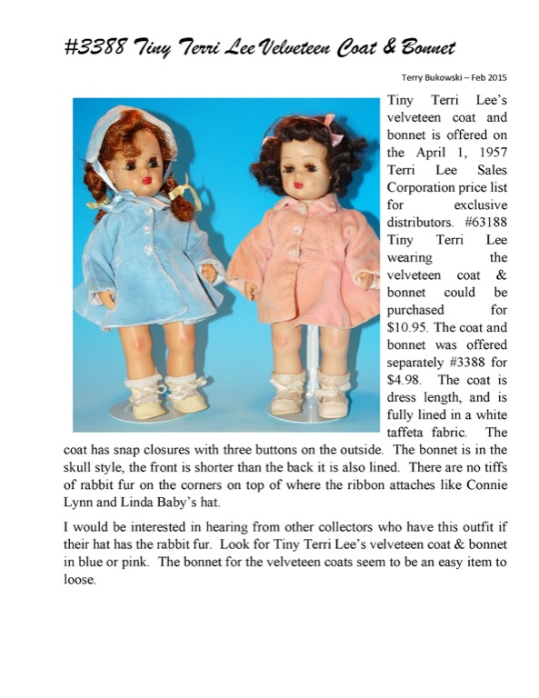 - #3388 Tiny Terri Lee Velveteen Coat & Bonnet