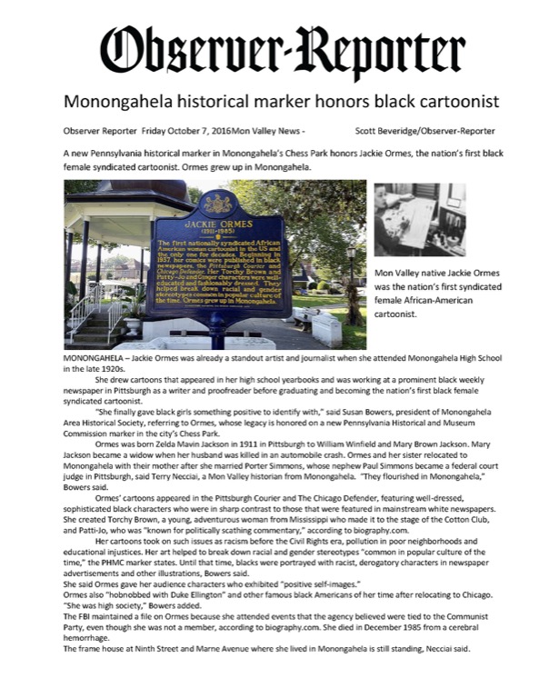 - Observer Reporter Article about Jackie Ormes