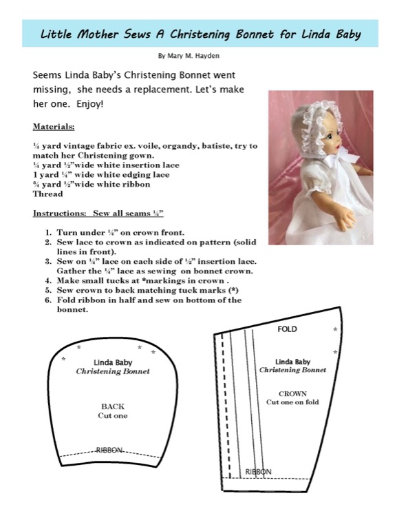 - Little Mother Sews A Christening Bonnet for Linda Baby